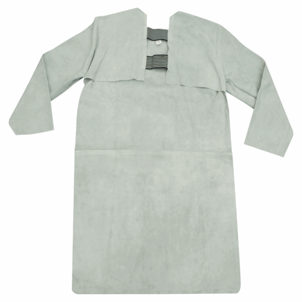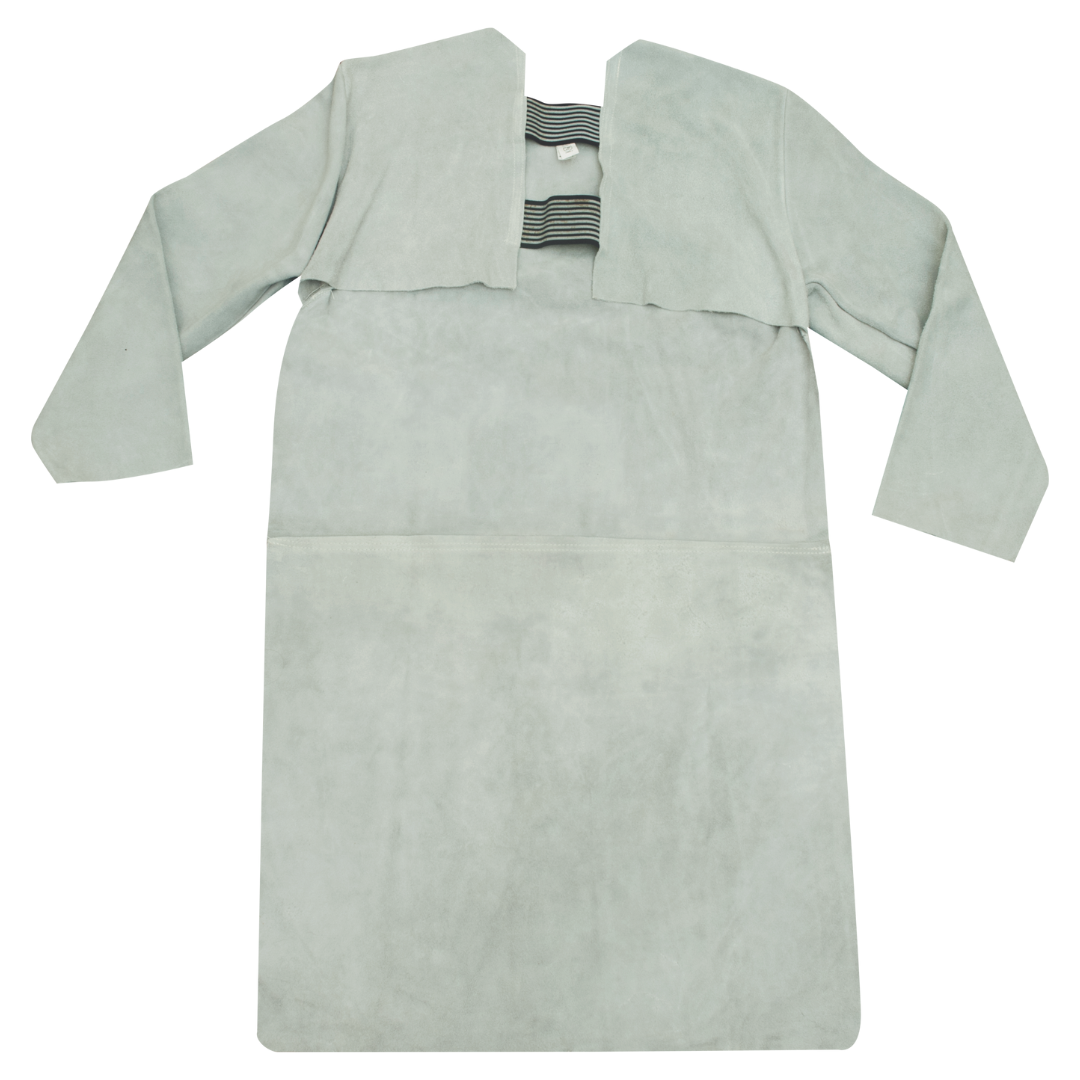 Confeccionada em raspa, com mangas, elástico para ajuste nas costas, com ou sem emenda e tiras de raspa para ajuste com fivelas plásticas.