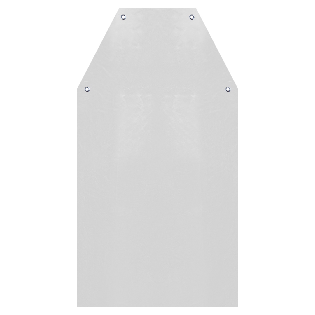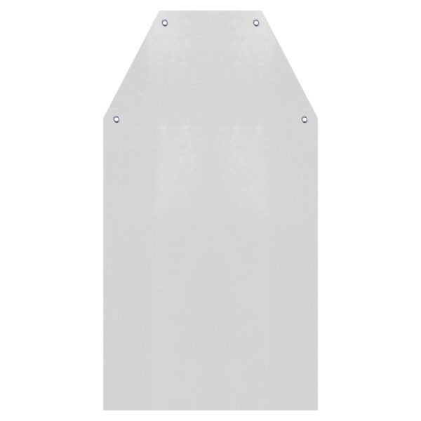 Aventais confeccionados em PVC, com ilhós com 02 tiras de cordão de polipropileno branco com 3mm.