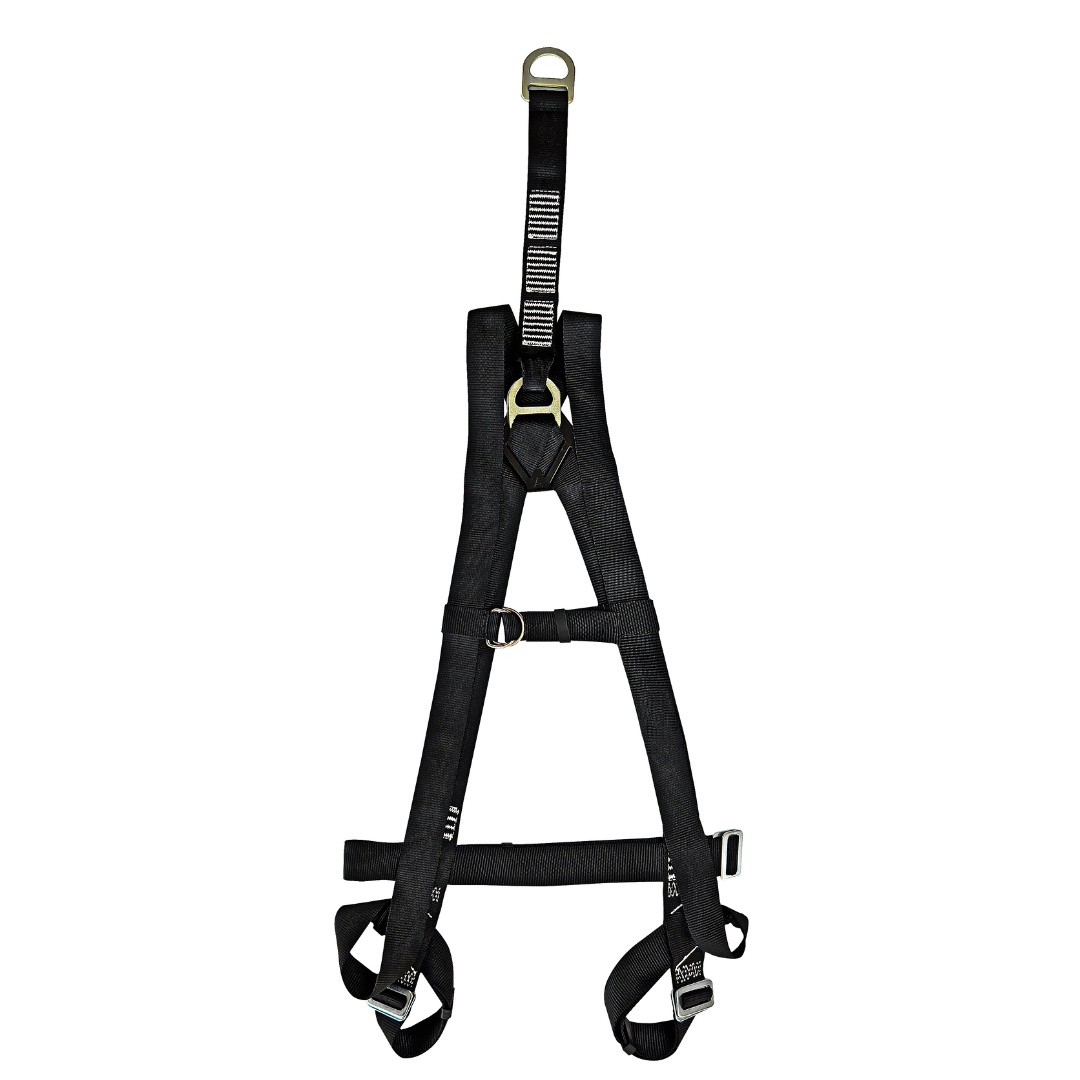 Confeccionado em fita de poliéster de 45 mm e fita secundária de poliéster de 35 mm. Possui 1 ponto de conexão estendido sendo uma meiaargola em “D” dorsal, confeccionada em açode alta resistência para retenção de queda. Possui três fivelas duplas sem pino confeccionadas em aço estampado para ajuste, sendo uma na cintura e duas nas pernas, e uma fivela simples confeccionada em aço e um passador plástico para ajuste peitoral. Produto certificado pelo INMETRO.